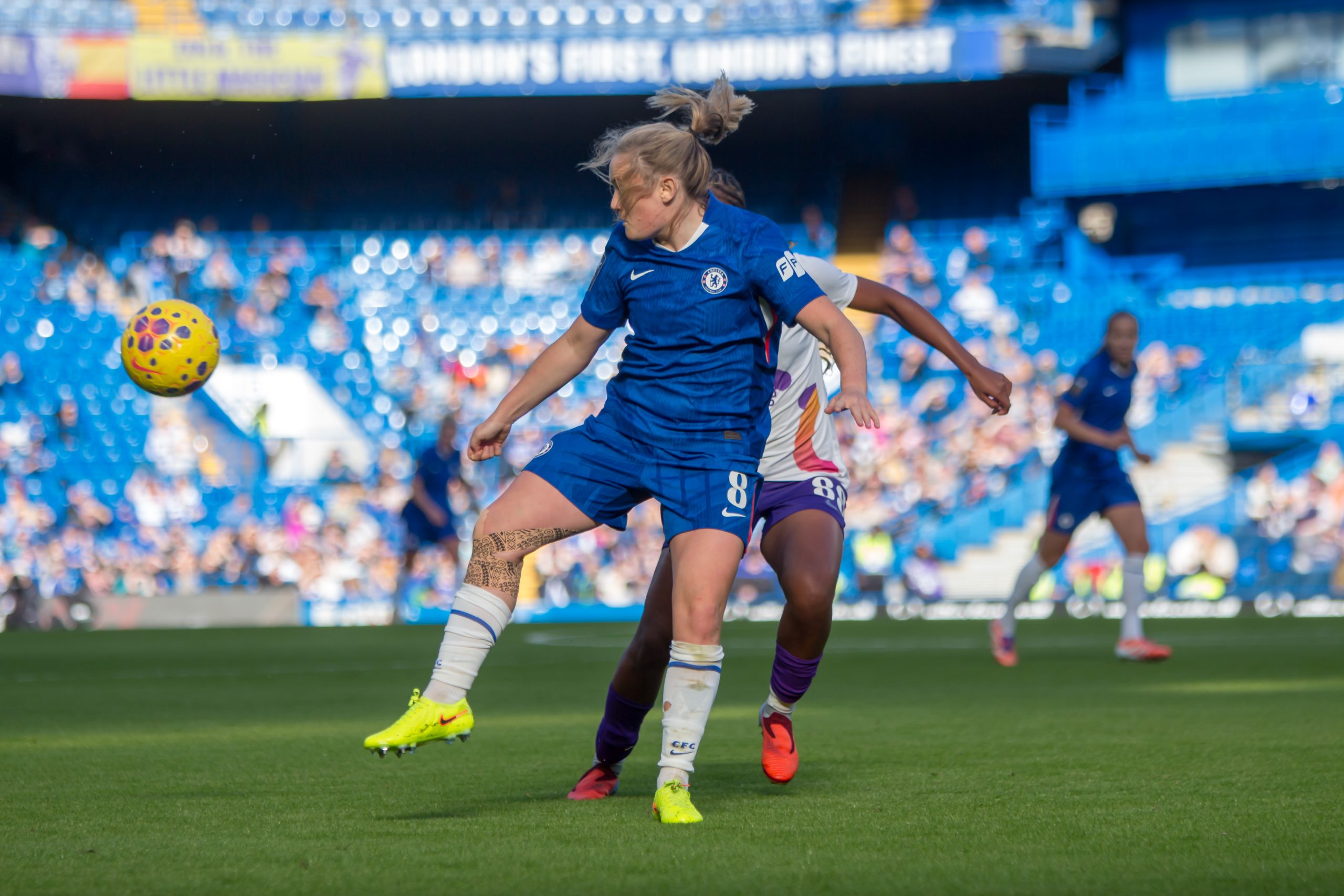 Erin Cuthbert (8 Chelsea) in action during the FA Womens Super League game between Chelsea and London City Lionesses at Stamford Bridge, London.