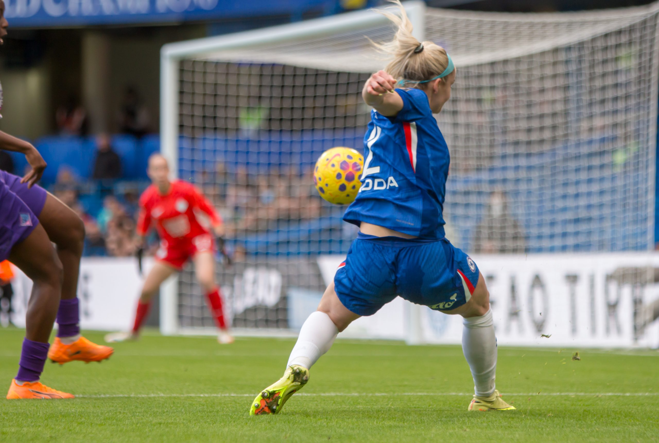 Ellie Carpenter (2 Chelsea) in action during the FA Womens Super League game between Chelsea and London City Lionesses at Stamford Bridge, London.