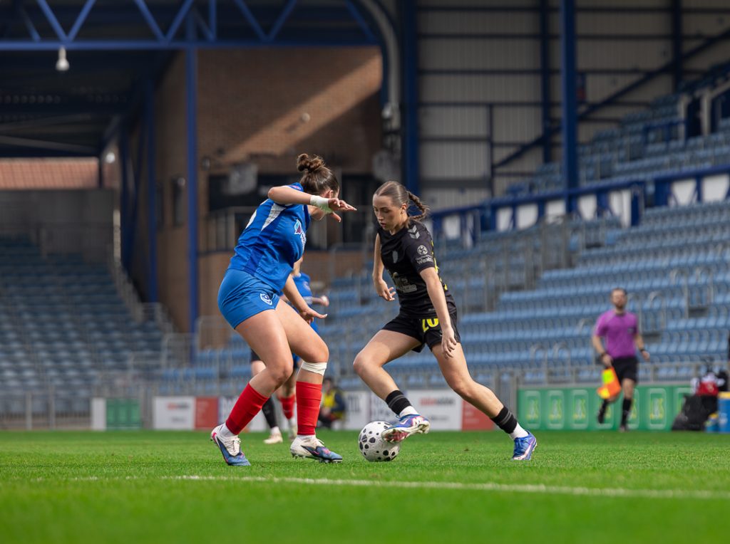 While the Lasses controlled much of the tempo, the match became a showcase for the two shot stoppers. Demi Lambourne was called into action on the half-hour mark, racing to the edge of her area to deny Tia Primmer in a one-on-one situation.