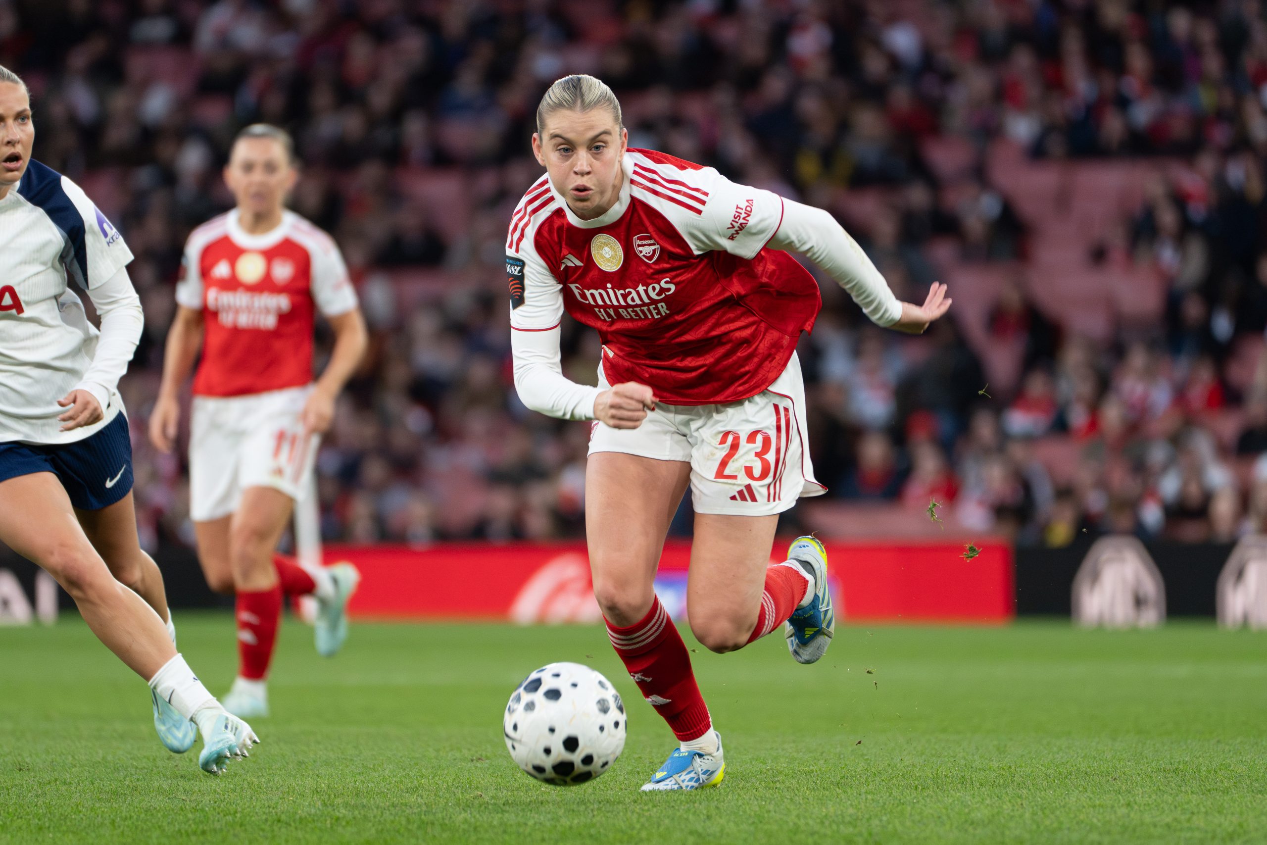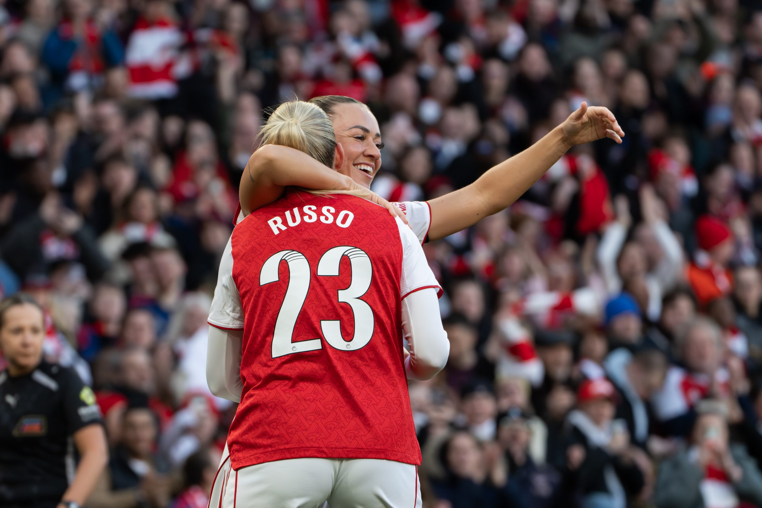 Tottenham briefly threatened a response when Frida Maanum turned the ball into her own net under pressure, but Arsenal quickly regained their two-goal cushion. A loose pass from goalkeeper Lize Kop fell straight to Russo, who hammered home from 15 yards to complete her first hat-trick for the club and effectively put the game beyond doubt before the break.